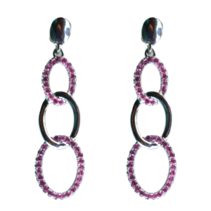BRINCO ELO CRAVEJADO PINK RÓDIO BRANCO