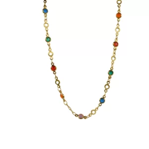 COLAR ZIRCONIAS COLORIDAS DOURADO 80 CM