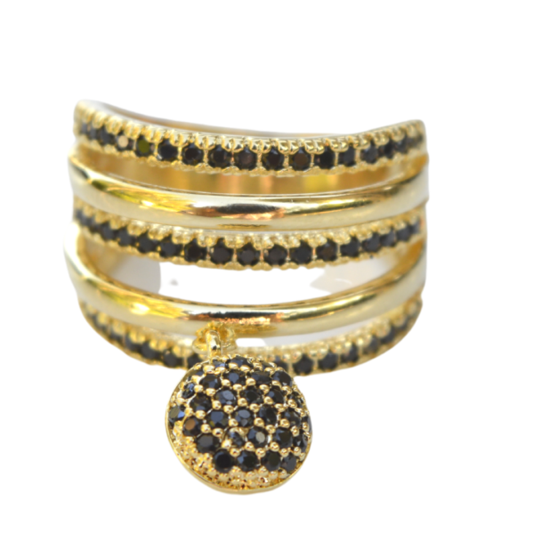 ANEL 3 FILEIRAS ZIRCONIAS NEGRAS 1 BOLINHA 17