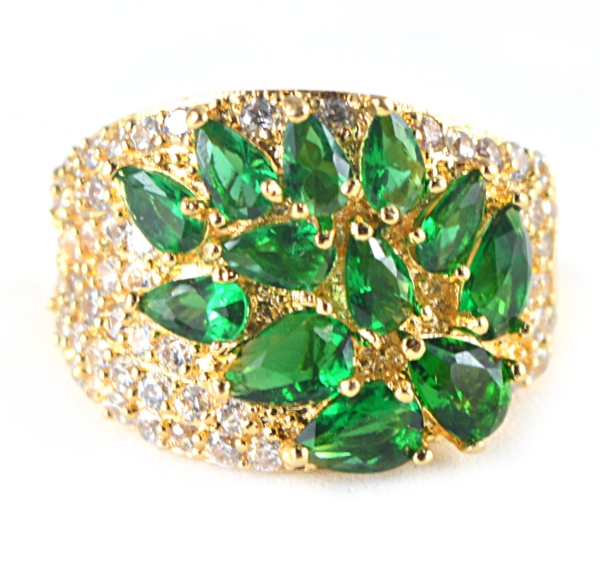 ANEL FESTA GOTAS VERDES COM ZIRC CRISTAL