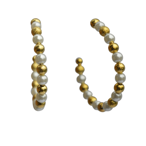 BRINCO ARGOLA PEROLAS/ BOLINHAS FOSCA M DOURADA