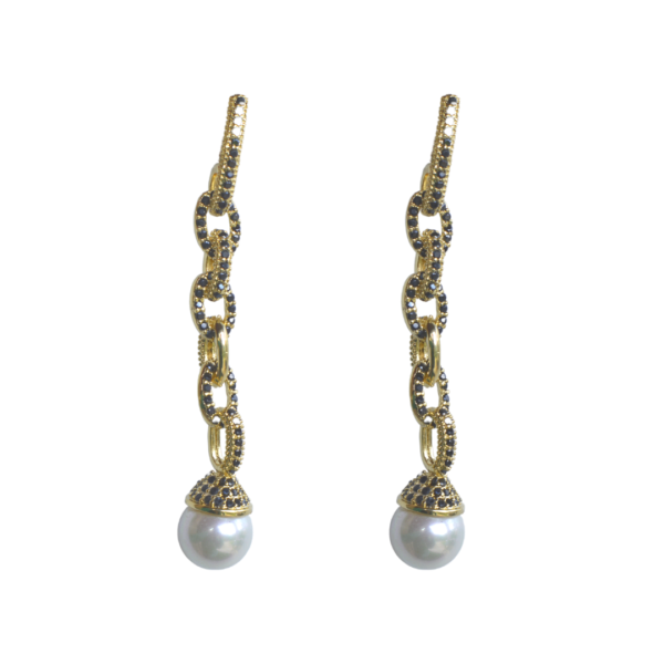 BRINCO CORRENTE CRAVEJADA NEGRO COM PÉROLA PONTA