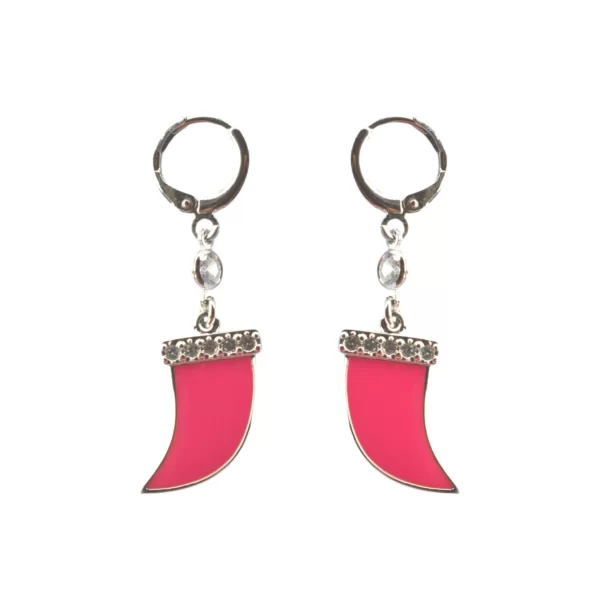BRINCO DENTE ROSA ZIRCONIA RÓDIO BRANCO