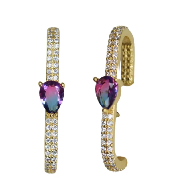 BRINCO ENCAIXE ORELHA GOTA ROXA AZUL E ZIRCONIAS