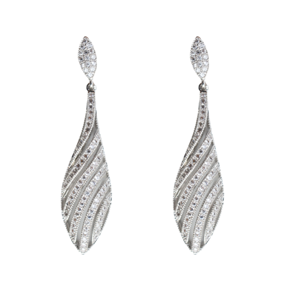 BRINCO FOLHA CRAVEJADO CRISTAL RÓDIO BRANCO
