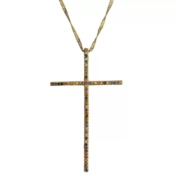 / COLAR CRUZ COLORIDA DOURADA
