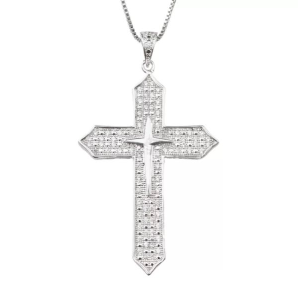 / COLAR CRUZ CRAVEJADA CRUZ LIDA MEIO RÓDIO BRANCO
