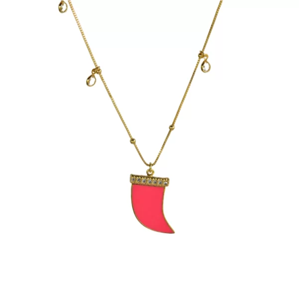 COLAR DENTE ROSA COM ZIRCONIAS DOURADO quantidade