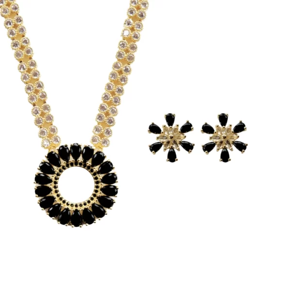 CONJ CHOKER DUPLA ZIRCONIA CRISTAL CIRCULO PRETO