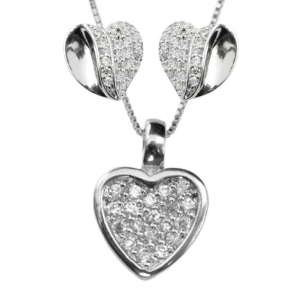 CONJ CORAÇÃO CRAVEJADO RÓDIO BRANCO