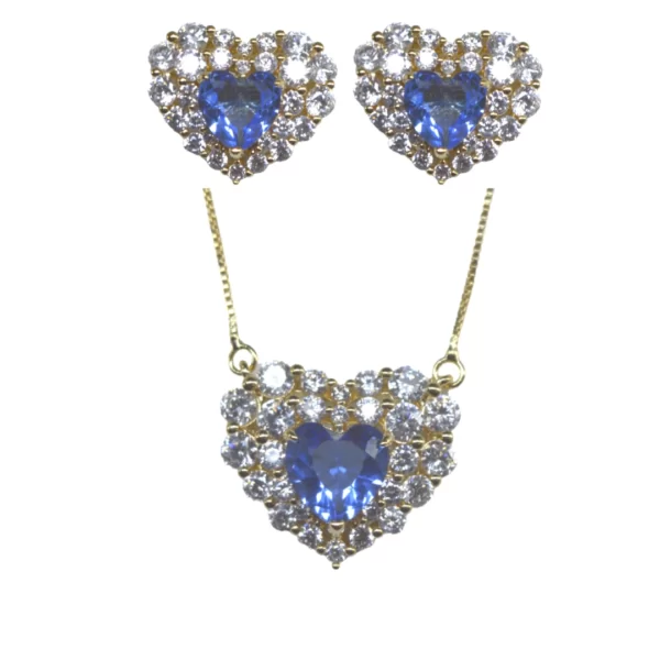 CONJ CORAÇÃO ZIRCONIA AZUL MEIO